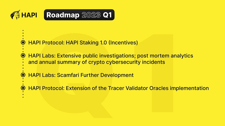 For the first quarter of 2023 we are preparing a new staking mechanism that will help to incentivized our community even more. There also will be a whole lot of development for HAPI Labs and core oracle functionality